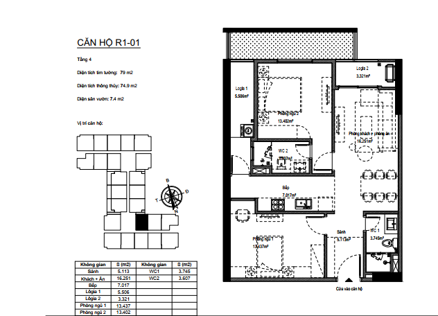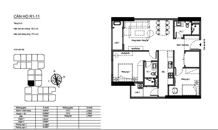 Thiết kế căn hộ 77m2 2 Phòng ngủ dự án Florence Mỹ Đình